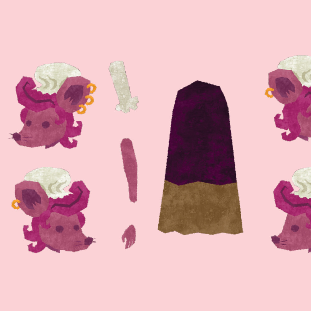 Ricky, the Rat. Surly male rat. A total scrapper. No stranger to bar fights, a rat warrior. Cora's younger brother. His hatred for hawks has bleed into the distrust of all “wings.” Had a traumatic experience as a kid when his mother was killed by a bird, his hatred stems from his inability to protect her.